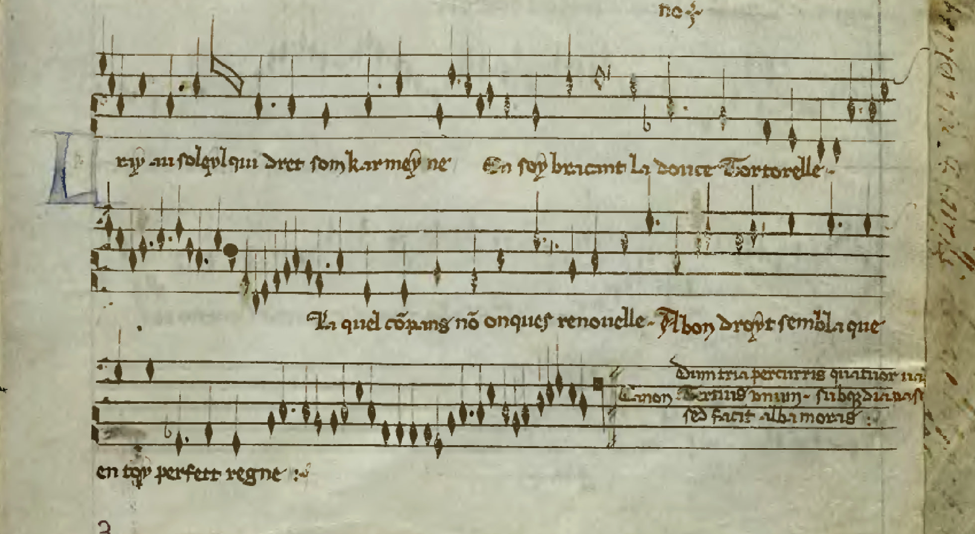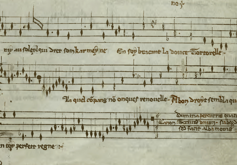 Mensural Notation: The diamond-shaped and square note-heads indicate specific rhythmic values, allowing for greater rhythmic complexity and flexibility.