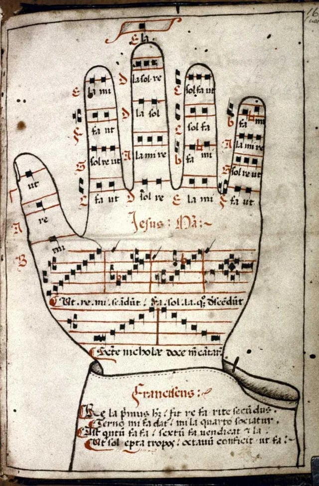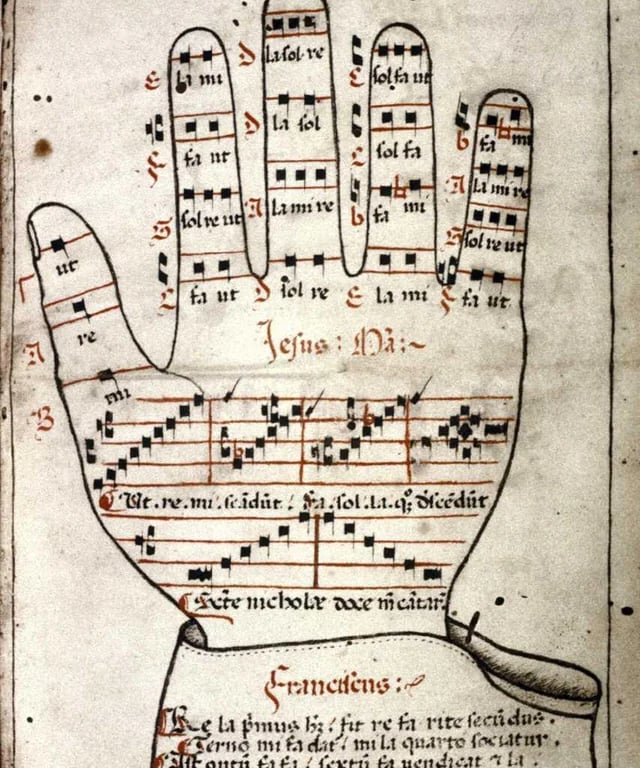 Guidonian Hand: Developed by Guido of Arezzo, this clever hand diagram helped students remember musical notes using finger positions. Each joint of the hand represented a specific pitch, making it a valuable tool for teaching music.