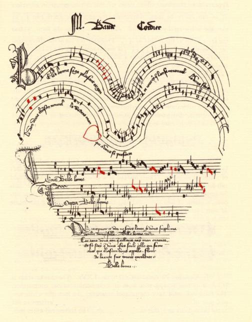 Eye Music: A visual form of music where the notation itself carried symbolic or artistic meaning. While it could still be performed as music, its visual design often conveyed additional messages or evoked emotions for those who viewed it. For example, composers would arrange notes into shapes such as hearts or crosses, blending artistic expression with musical composition. This technique became especially popular during the Renaissance period.
