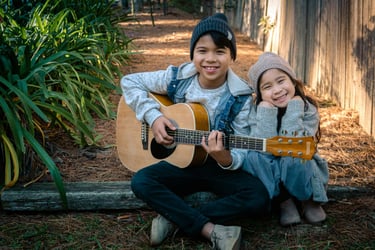 Acoustic guitar: Playing guitar introduces children to chords and basic music theory, which helps develop their musical understanding. The finger strength required for pressing down strings is appropriate for children whose hands are large enough and dexterous enough to manage the instrument.